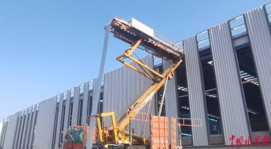 宁波舟山港北仑港区灰库项目一期工程的砌体工程施工现场,工人们正紧锣密鼓地进行空箱库钢布局墙面檩条安拆、工艺设备调试、机电工程安拆等环节功课。目前,估计本年6月完工。