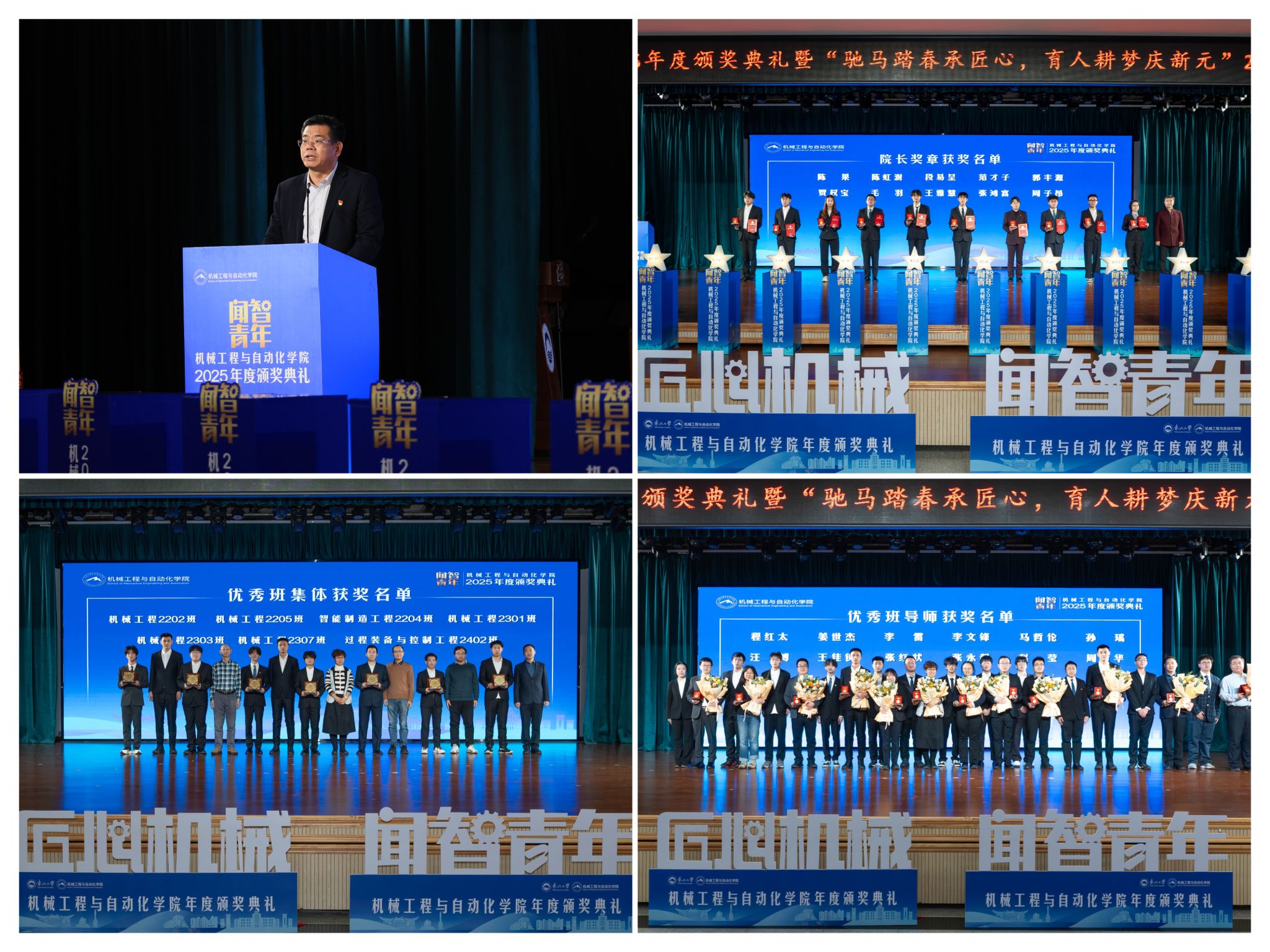 学院党委郝建山正在致辞中系统回首了一年来学院取得的主要成绩。学院积极办事国度计谋,投身深度金属矿智能开采纳配备全国沉点尝试室扶植,并正在环节科研范畴实现标记性冲破,获得国度严沉专项支撑。同时,学院成功引进增材取激光制制范畴领军团队,为久远成长奠基根本。正在人才培育方面,学院学子表示凸起,研究生学术丰盛,正在“挑和杯”“中国国际大学生立异大赛”等多项赛事中斩获国度级项,结业生就业率持续连结高位,展示了全面成长的优良素养。郝建山阐释了“闻智青年”品牌的育人内涵,勉励全体师生胸怀“国之大者”,将小我成长融入“制制强国”计谋,过硬本事,怯于立异创制,勤奋成为担任平易近族回复大任的时代新人。副院长罗忠表扬决定。颁环节分三轮顺次进行。起首颁布的是“院长章”,刘云飞为毛羽等10名正在专业进修、科技立异、社会实践等方面表示杰出的学生颁布章。随后颁布“优良班集体”项,班导师代表为7个正在班风、学风及凝结力扶植中成效显著的班级颁。仪式聚焦育人一线论理学生代表向获评“优良班导师”的教员们献上鲜花取荣誉证书,表达诚挚感谢感动。“院长章”获得者代表毛羽连系科研竞赛取意愿办事履历,讲述了“道阻且长,行则将至”的成长;“优良班集体”获代表豆煜轩分享了班级凝心聚力、共建优秀学风的活泼经验。正在“闻智匠心 共话青蓝”出格环节,优良班导师马哲伦取所带班级学生代表刘定佳同台交换,从分歧视角展示了师生间思惟引领、讲授相长的温情互动,彰显了育人一线的深挚交谊取结实成效。据悉,“闻智青年”是机械工程取从动化学院出力打制的文化育人品牌。本次颁仪式既是年度的集中展现,也是典型树立、激励朝上进步的主要平台,旨正在指导全体学生以先辈为楷模,坚想、夯实专业根本、锻制立异能力,勤奋成长为具有家国情怀、全球视野取创制活力的杰出工程人才,为学校“双一流”扶植和高质量成长注入芳华力量。